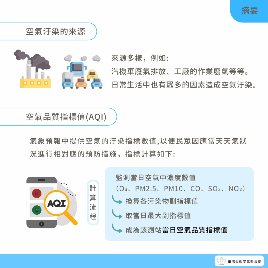 - 環境部空氣品質監測網 – 相關名詞定義。https://airtw.moenv.gov.tw/CHT/Encyclopedia/FAQ/relatednoun.aspx