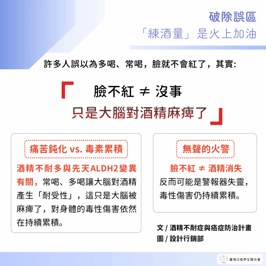 許多人誤以為多喝、常喝,臉就不會紅了,這其實是最危險的行為: