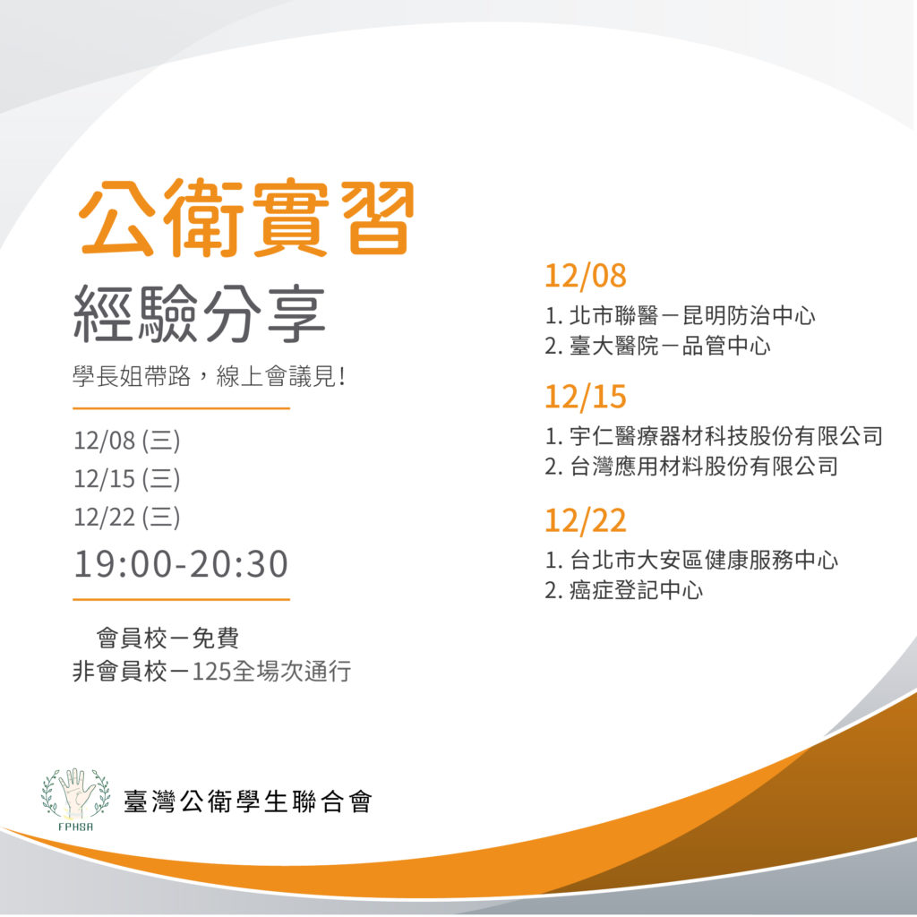 公衛相關科系未來想實習者皆可參加