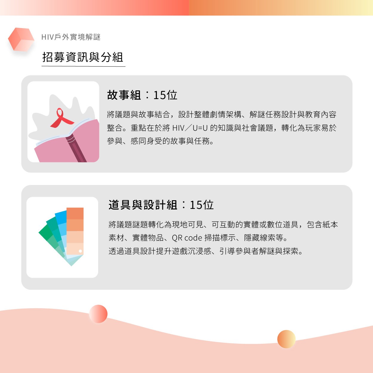 任務:運用創新思維將議題謎題轉化為現地可見、可互動的實體或數位道具,包含紙本素材、實體物品、QR code 掃描標示、隱藏線索等。