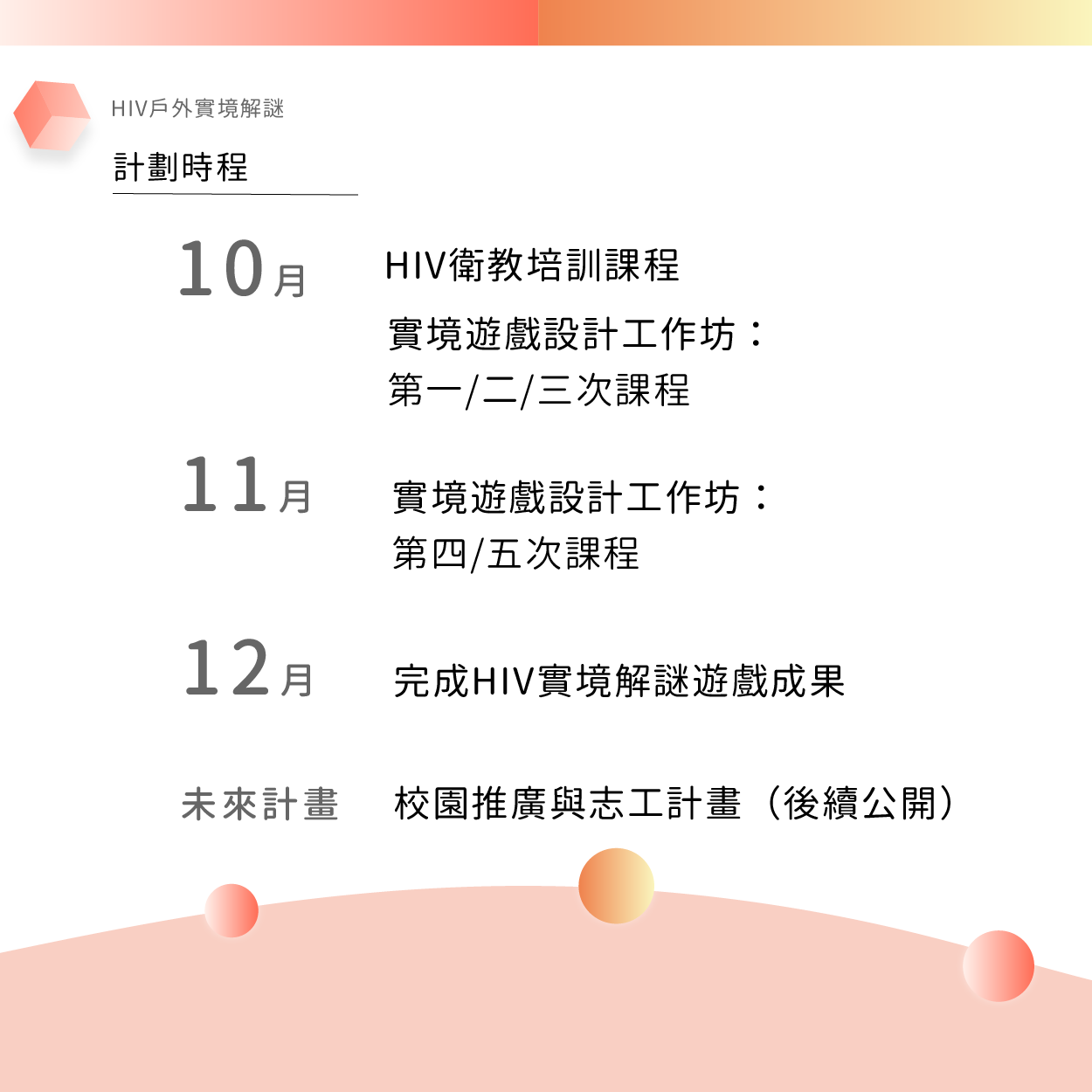 打算將整個西門町的場域變成遊戲地圖,讓街道巷弄化身為關卡,透過課程引導與你我的動手創造,打造戶外實境解謎遊戲。期望未來讓更多學生、民眾透過寓教於樂的形式,從中學習到HIV去污名化的資訊與議題,也讓議題更貼近日常。