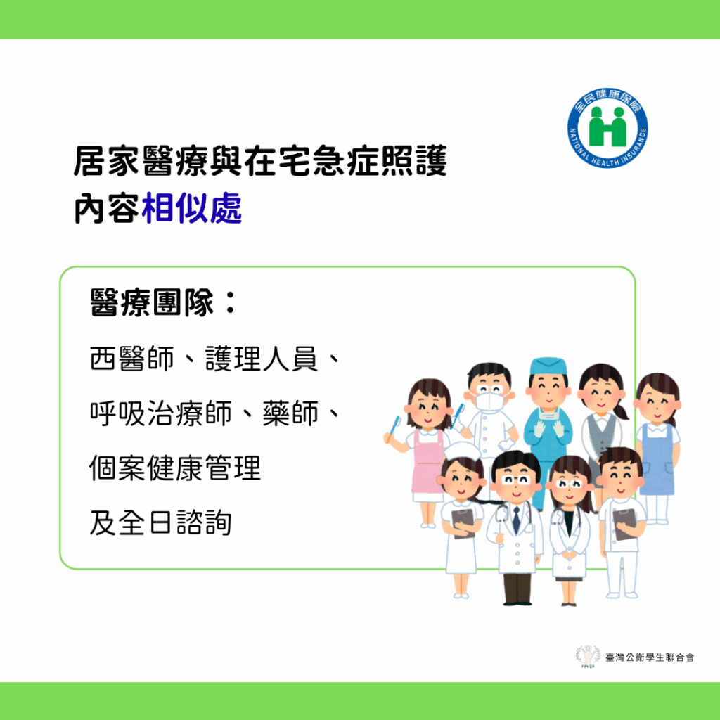 - 個案健康管理:監測生命徵象、穩定健康狀態,並得使用遠端個案健康管理;協助病人連結醫療及長期照顧服務資。
